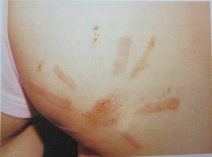 (2)化学烧伤:有明确的刺激性、腐蚀性化学物质的直接接触史,起病急,呈现I~Ⅲ度烧伤的临床表现,溃疡不呈“鸟眼状”,皮损范围常以占体表总面积的百分比来表示。