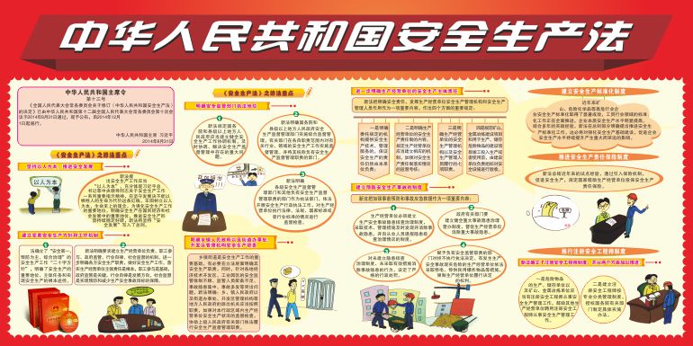 《中华人民共和国安全生产法(2014年最新版)》共七章一百一十四条,明确了立法目的和调整范围,完善安全工作方针和机制,完善建设项目“三同时”制度,补充了安全文化建设的内容,补充了生产安全事故应急救援的规定,强化了生产经营单位安全生产主体责任,完善了安全生产投入的规定,强化安全监管行政执法措施,加大了对安全生产违法行为的处罚力度,注册安全工程师制度的原则规定,对安全生产相关的重要概念做出了明确规定。