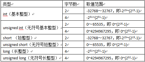 整型类型:基本整型、短整型、长整型、双长整型(C99新加)、字符型、布尔型(C99新加)