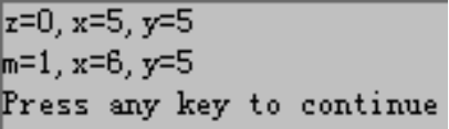 printf("m=%d,x=%d,y=%d\n",m,x,y);