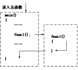 主函数是程序的入口,若主函数中调用了其它函数,将进入其它函数执行其功能,执行完毕之后再继续执行主函数中内容。程序执行流程如下图所示