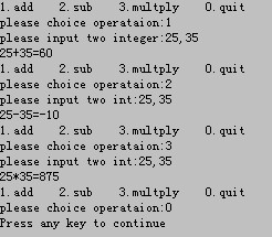 printf("1.add 2.sub 3.multply 0.quit\n");