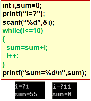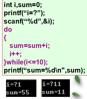 当while后面的表达式的第一次的值为“真”时,两种循环得到的结果相同;否则不相同