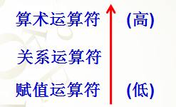 关系、算术、赋值运算符的优先级如下所示: