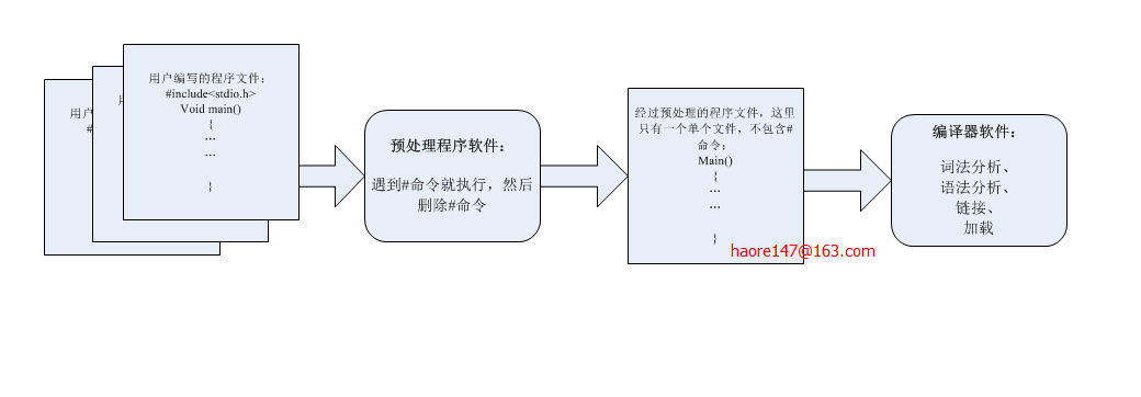 预处理器的输入是一个C语言程序,程序可能包含指令。预处理器会执行这些指令,并在处理过程中删除这些指令。预处理器的输出是另外一个程序:原程序的一个编辑后的版本,不再包含指令。预处理器的输出被直接交给编译器,编译器检查程序是否有错误,并经程序翻译为目标代码。