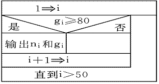 例2.2 有50个学生,要求将成绩在80分以上的学生学号和成绩输出。n表示学号,g表示成绩, 算法表示如下:
