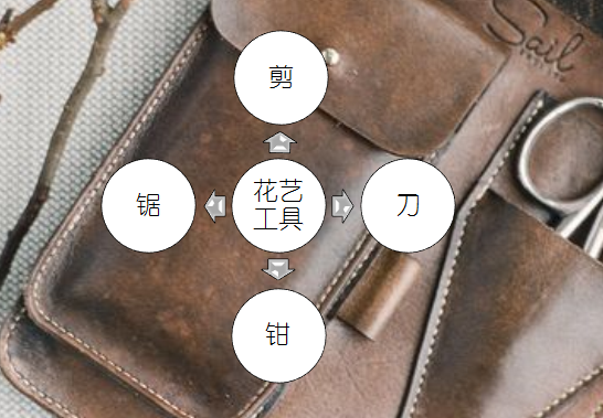 花剪:花枝都有细密的导管进行吸水,普通的剪刀上下剪时将导致导管被压扁堵塞,而专业花艺剪刀则可以减少导管的压迫,延长花材的寿命。花剪是花艺师的必备。市面上使用较多的是坂源剪、池坊剪和爱丽丝剪等。