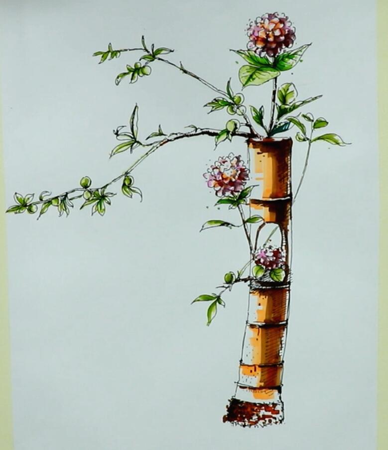 d、花艺作品的花材和花器线条应用技巧的体现,应和主题一致,渲染出自然、优美,符合自然状态的天成之态。