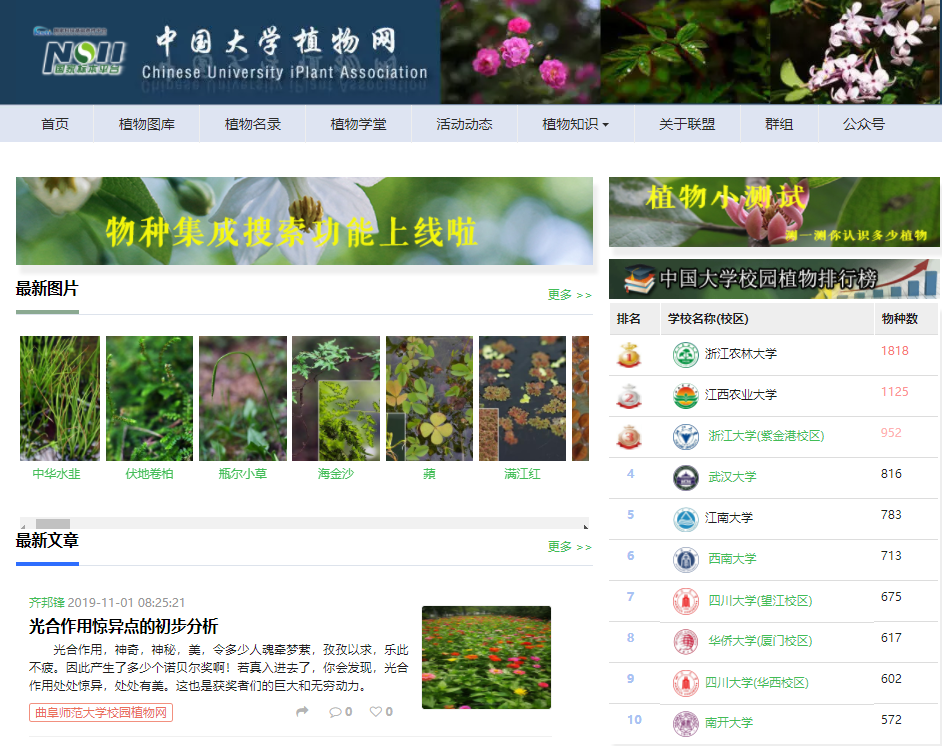 3、我们给大家推荐中国大学植物网联盟网站(http://site.nsii.org.cn/CampusFlora.html),欢迎大家的光顾,了解发生在校园里的花草故事。也欢迎使用植物小测工具(http://site.nsii.org.cn/App/IdentTest/),掌握更多的花材种类。