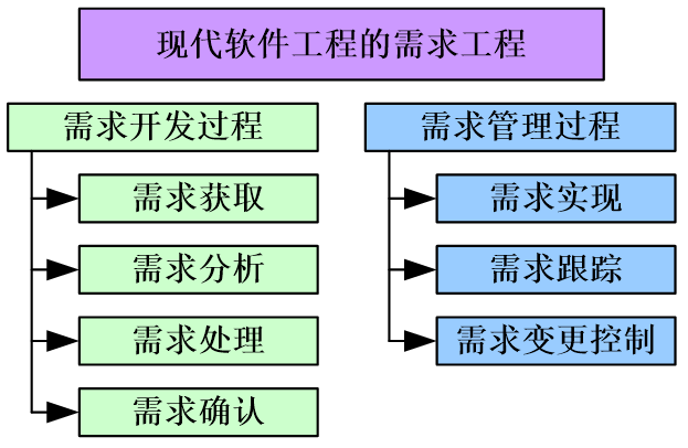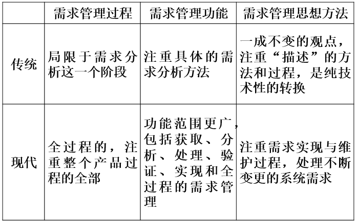 现代需求过程:包括需求的获取、分析、处理、验证、实现和全过程的需求管理。需求管理覆盖软件工程的整个过程。