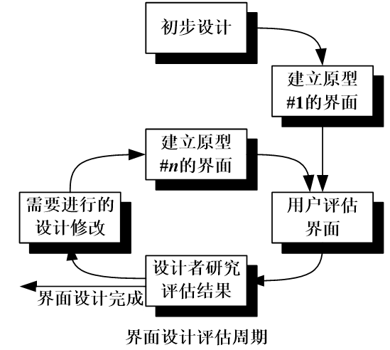 用户界面设计是一个迭代的过程,也就是说,通常先创建设计模型,再用原型实现这个设计模型,并由用户试用和评估,然后根据用户意见进行修改。