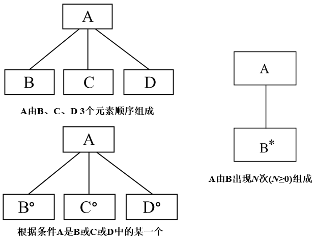 重复结构:重复结构的数据,根据使用时的条件由一个数据元素出现零次或多次构成。
