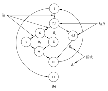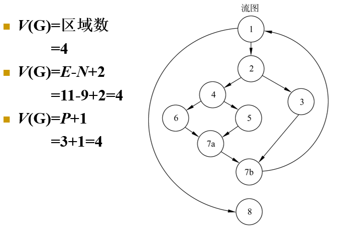 V(G)=E-N+2(其中E是流图中的边数,N是结点数)