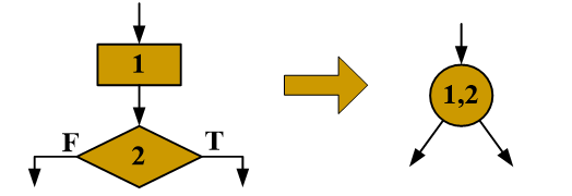 对于顺序结构,一个顺序处理序列和下一个选择或循环的开始语句,可以映射成流图中的一个结点。