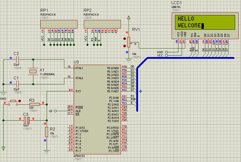3. 掌握用单片机控制LCD1602液晶显示的仿真电路绘制。