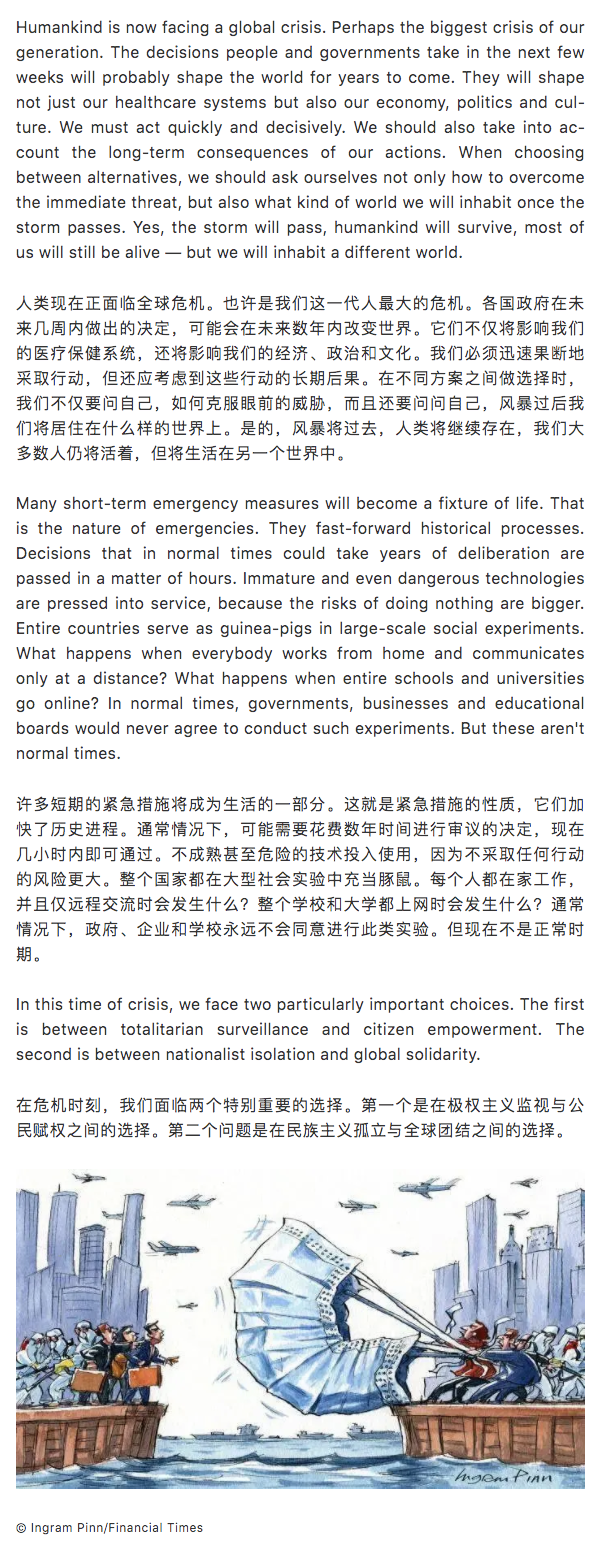 Yuval Noah Harari: the world after coronavirus冠状病毒之后的世界