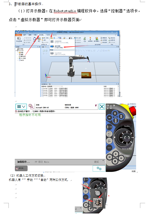 1.掌握RobotStudio软件中示教器以及真实示教器的基本使用方法
