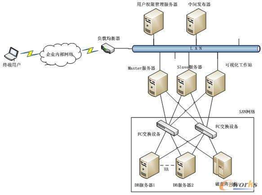 集群结构:相同的系统复制多份,同时完成某项工作。系统扩展容易,但需要负载均衡(需要调度者),通常集群都是物理位置分散的,如下图所示: