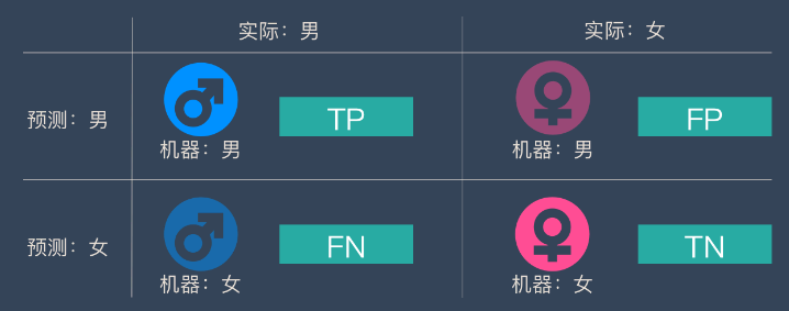 TP - True Positive:实际为男性,且判断为男性(正确)