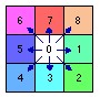 成本方向(CostDirection,Cost Back Link):根据累积最低成本栅格数据,确定每一个像元沿最低成本路径,回到最近邻源的方向。