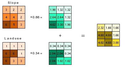 对于斜角的4个相邻像元来说:成本距离={[(成本a×水平因子a)+(成本b×水平因子b)]/2}×1.4142×表面距离ab×垂直因子ab。