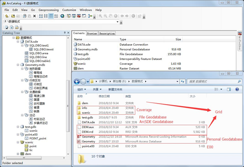 图2.46 多种格式的数据在ArcCatalog与Windows资源管理器中的体现