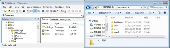 Coverage采用“基于文件夹”的方式来存储,空间信息和属性信息分别存放在两个文件夹里。