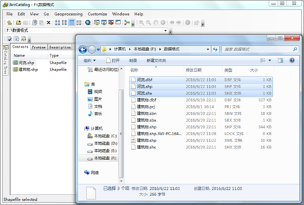 图2.44 Shapefile格式的数据在ArcCatalog与Windows资源管理器中的体现