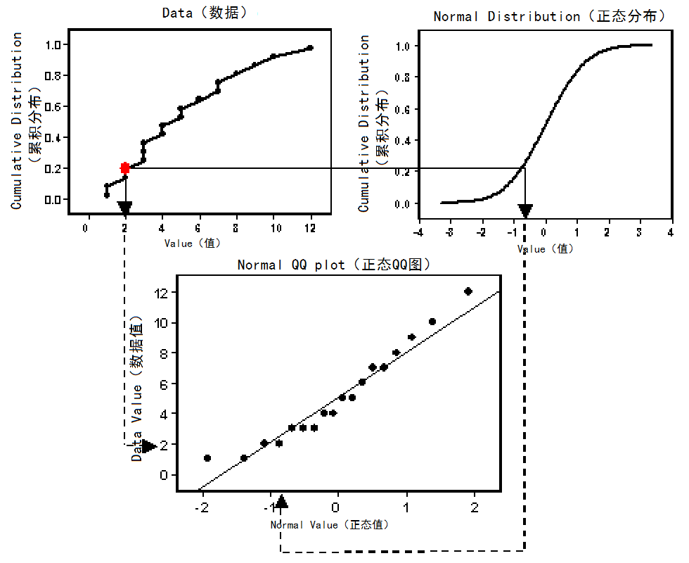 正态QQ图(NormalQQ Plot)主要用来评估具有N个值的单变量样本数据是否服从正态分布。
