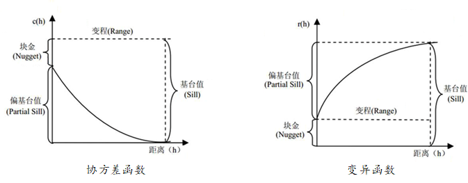 协方差函数和变异函数实质上都是用于估计误差的函数,协方差函数图和变异函数图都是误差的曲线分布图。变异函数与协方差函数表现了两事物间的空间相关性,当两事物之间的距离较小时,也就是当两事物间的距离满足