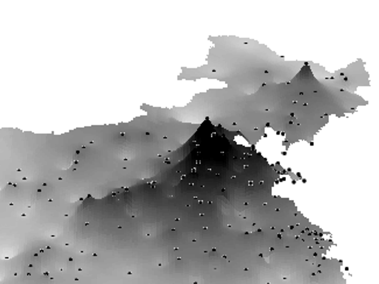 除了常见的地形可以三维显示外,我们还可以将地表的某些属性,如气温、降水、污染状况等,以三维的形式展现出来,从而可以更加准确展现这些属性的空间分布格局。