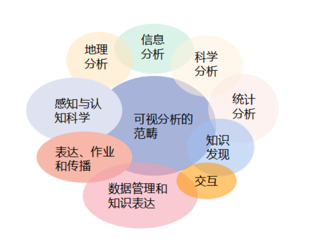 可视分析学可看成将可视化、人的因素和数据分析集成在内的一种新思路。其中,感知与认知科学研究人在可视分析学中的重要作用;数据管理和知识表达是可视分析构建数据到知识转换的基础理论;地理分析、信息分析、科学分析、统计分析、知识发现等是可视分析学的核心分析论方法;在整个可视分析过程中,人机交互必不可少,用于驾驭模型构建、分析推理和信息呈现等整个过程;可视分析流程中推导出的结论与知识最终需要向用户表达、作业和传播。可视分析学是一门综合性学科,与多个领域相关:在可视化方面,有信息可视化、科学可视化与计算机图形学;与数据分析相关的领域包括信息获取、数据处理和数据挖掘;而在交互方面,则有人机交互、认知科学和感知等学科融合。
