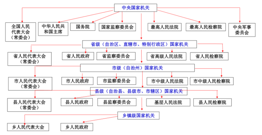 层次数据可视化中,层次数据表达每个个体之间的层次关系。其中,树图是对现实世界事物关系的抽象,是层次数据可视化的典型案例,其数据本身就有层次结构的信息。图1-11就是国家部门机构进行层次划分,第一层是中央,第二层是中央部门,依次类推。