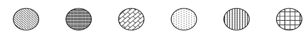 纹理可以被认为是多种视觉变量的组合,包括形状(组成纹理的基本元素)、颜色(纹理中每个像素的颜色)和方向(纹理中形状和颜色的旋转变化)。简单的纹理,例如,由虚线或者点画线填充,被广泛地用来区分不同的物体。而具有不同颜色的形状也常常用作纹理。纹理通常用于填充多边形、区域或者表面。在三维应用中,纹理一般作为几何物体的属性,用来表示高度、频率和方向等信息。同样地,对于二维的图形物体,我们可以通过使用不同的纹理来表示不同的数据范围或分布。形状或颜色的变化都可以用来组成不同的纹理。图2-28显示了6种纹理的例子,这些纹理具有不同的形状或者方向。