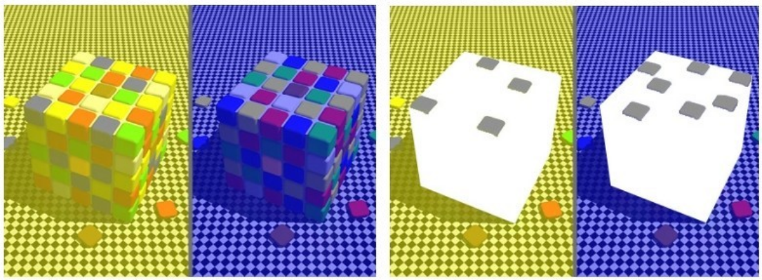 (c)部分遮挡:由不透明色块的堆叠构成,但有可能因为遮挡造成信息缺失。