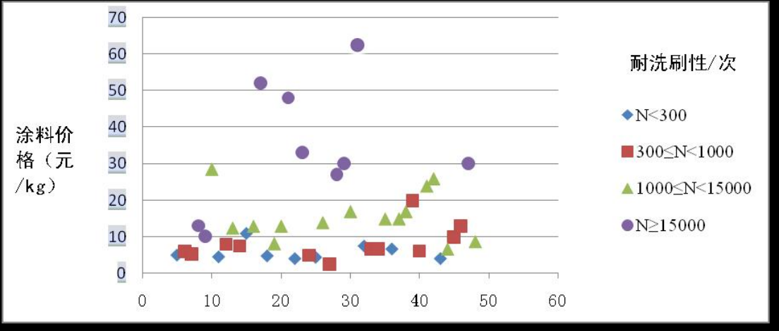 图2-27涂料价格和耐洗刷性次数的关系和比较