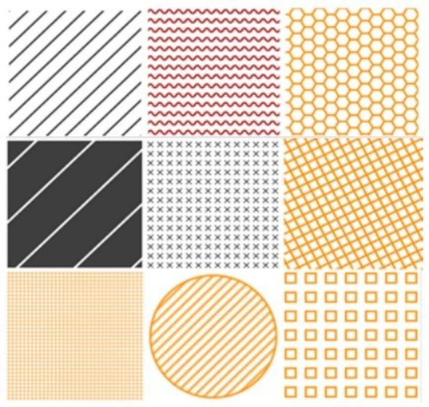 应用纹理可以避免在可视化设计中使用过多的色彩,同时也可以照顾到色盲、色弱用户的理解。Textures.js是一个JavaScript的数据可视化库,用于制作纹理,如图2-29所示。