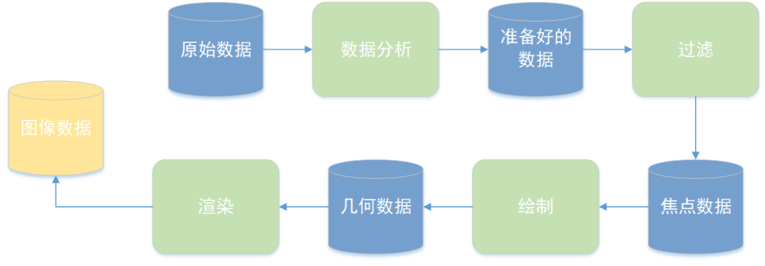 可视化整体可分为三步:分析-处理-生成。在这里只做简要介绍,具体实施会在后文详细介绍。