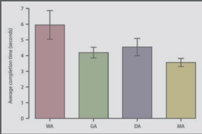 (1)不使用标注的方法在地图上找到AOI,需要花费比使用标注的方法更长的时间,即:WA>GA,WA>DA,WA>MA。
