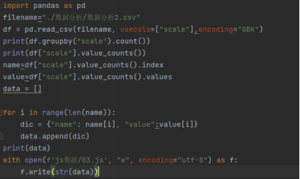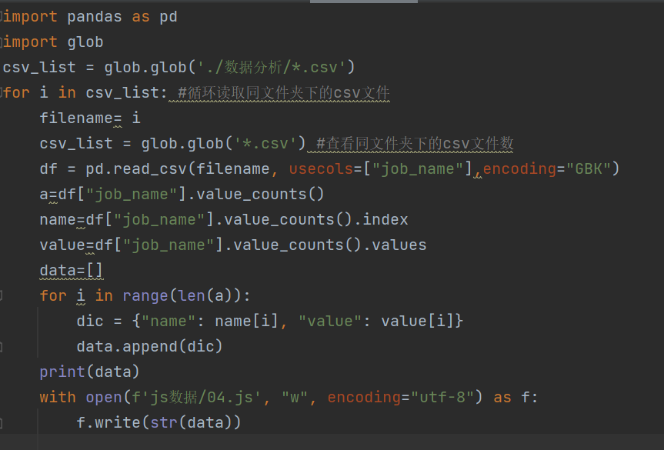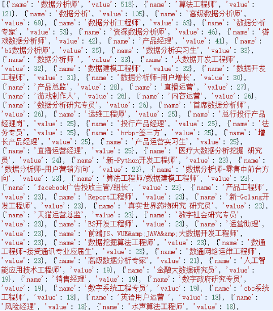 通过遍历,计算得出每个职位名称的数量,并且转化为json格式。