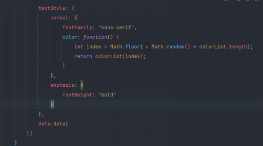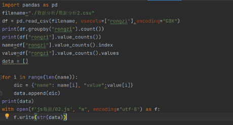 在引入下载词云图包,将进行处理后的json数据导入data当中,利用echarts模块生成对应词云图。下图为部分代码。