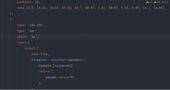 通过echarts,采用堆叠图的形式,计算出每个数据的百分比,对展示内容进行格式化。部分代码如下。