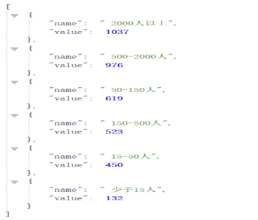 a.分别统计不同公司人数规模的数量,并转换为json格式。