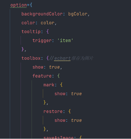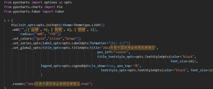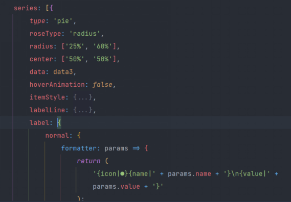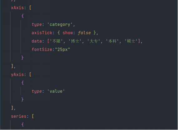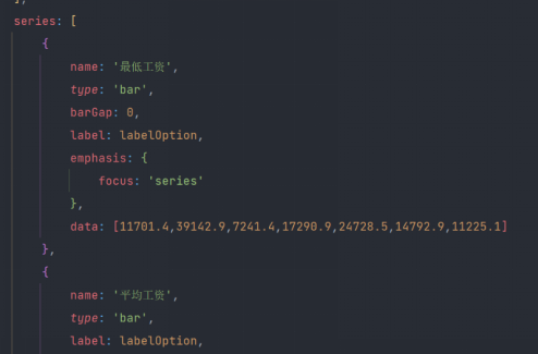 将进行处理后的json数据导入data当中,利用echarts模块生成对应图表。下图为部分代码。