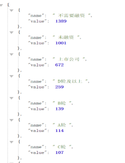 b.分别统计不同公司融资等级的数量,并转换为json格式。