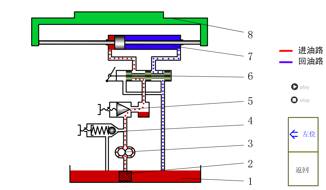 回油路: 液压缸右腔 → →油箱。