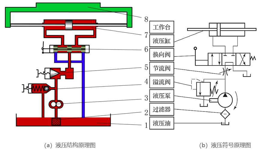 图示的磨床液压系统由 8 个部件组成,这 8 个部件名称是什么,各起什么作用,最终是如何协作共同完成系统工作的呢?我们通过识读磨床液压系统解答以上疑惑。