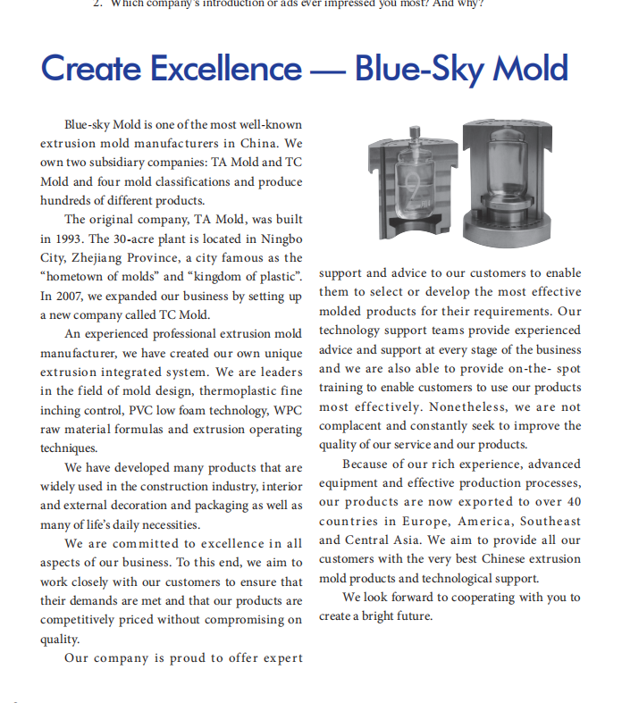 The Marketing Assistant from Blue-Sky Mold in China