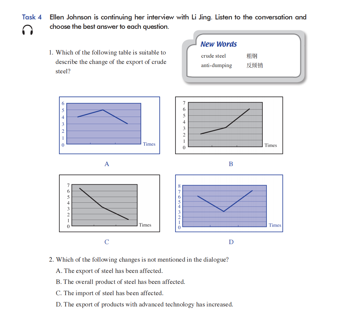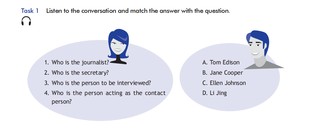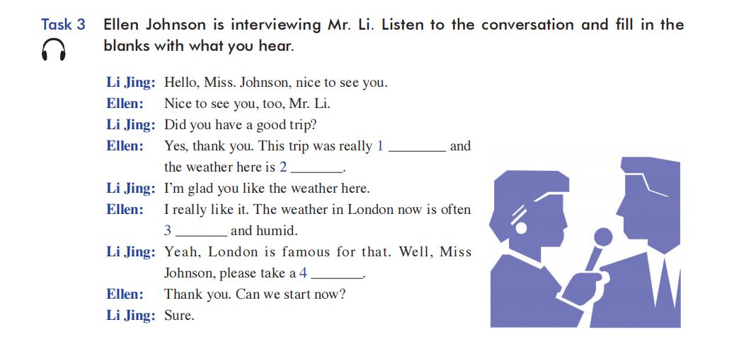 Task 4 Ellen Johnson is continuing her interview with Li Jing. Listen to the conversation and choose the best answer to each question.