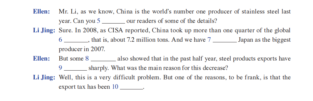 Task 3 Ellen Johnson is interviewing Mr. Li. Listen to the conversation and fill in the blanks with what you hear.